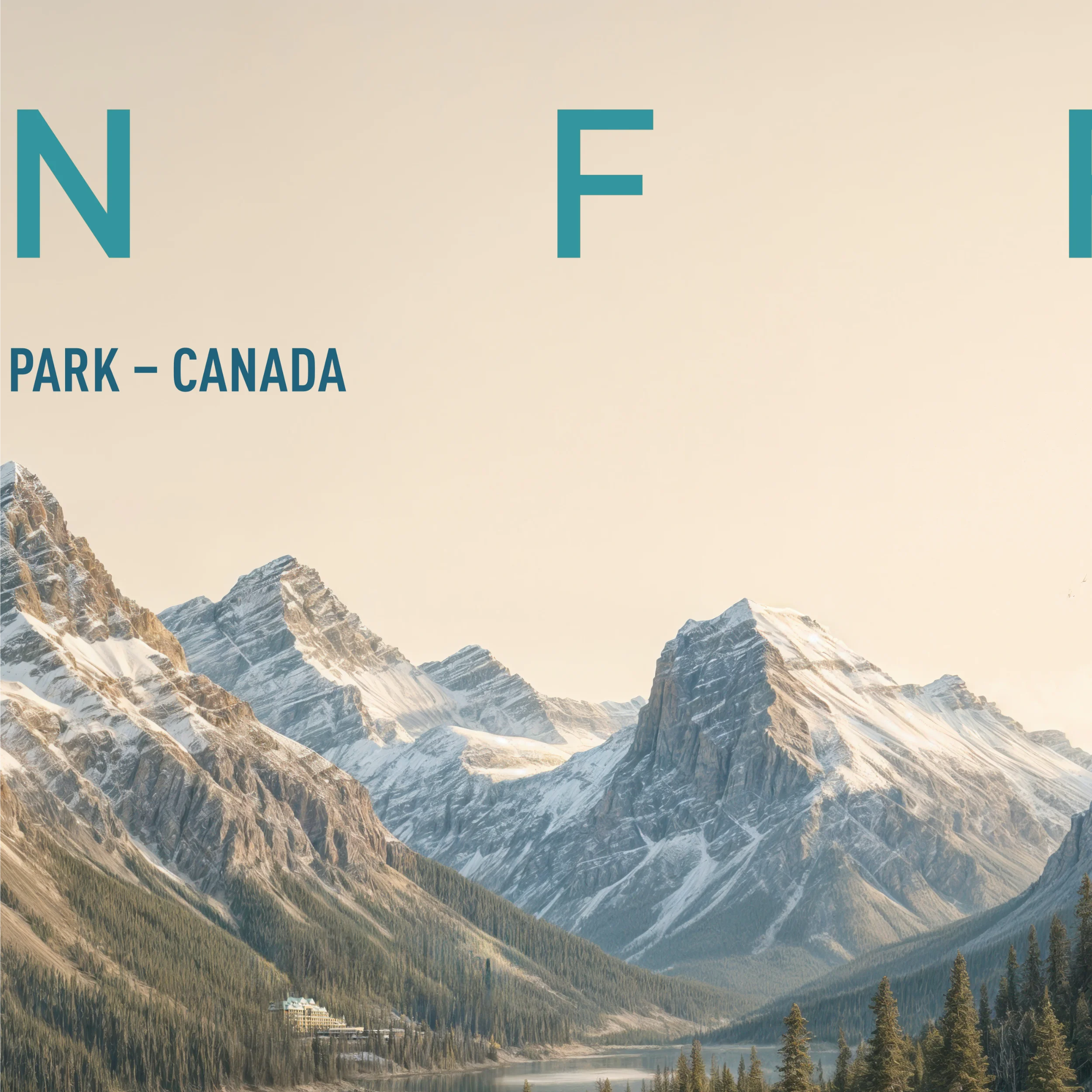 Tucked between the snow-draped peaks of the Canadian Rockies, Banff emerges in this Explorer Series poster like a scene from a well-placed dream. The serene glacial lake gleams in surreal turquoise, hugged by thick forests and overlooked by a fairytale hotel that looks like it might serve cocoa and stories at sunset.