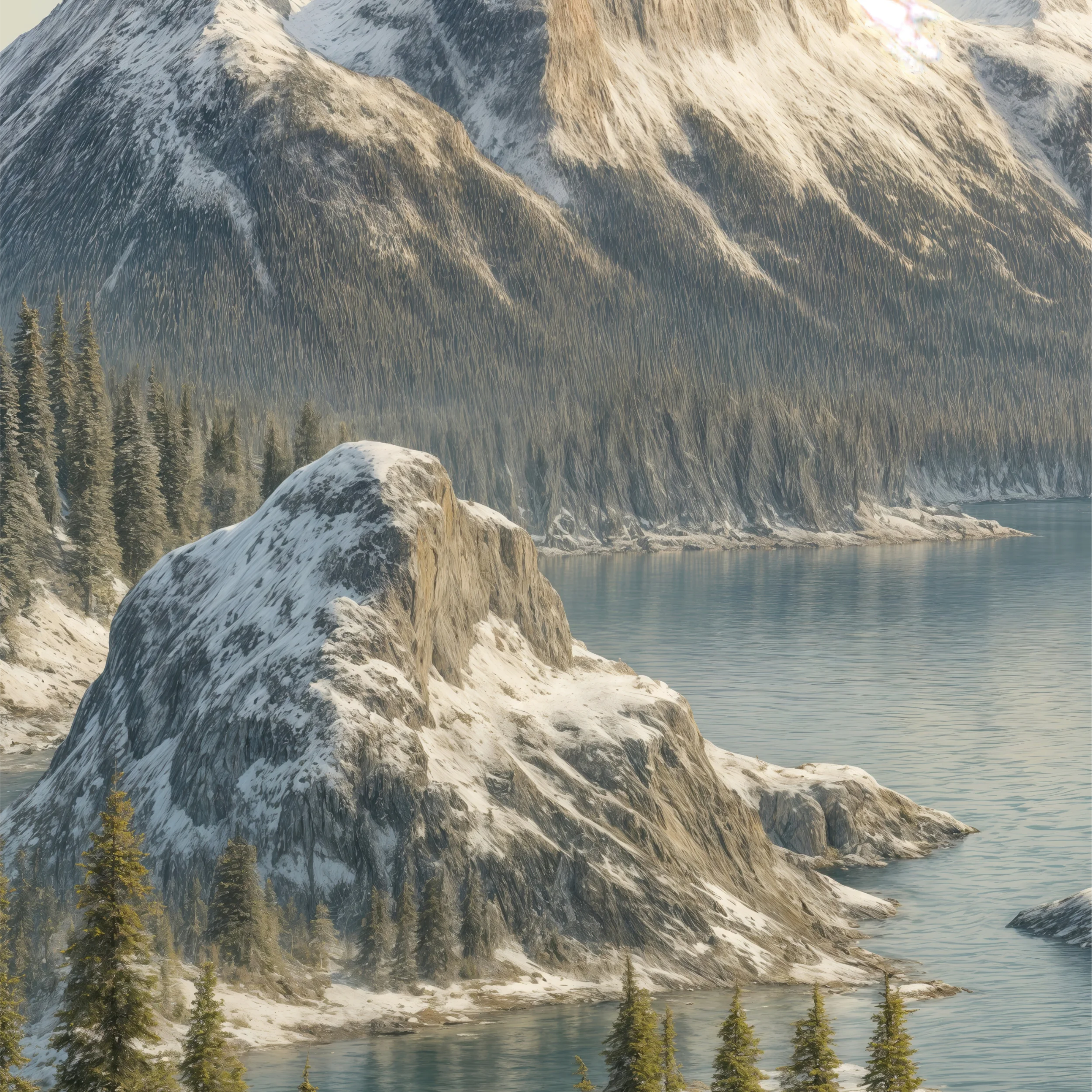 In this quietly cinematic diorama, Jasper National Park emerges like a moment frozen in glacial time. Towering, snow-cloaked peaks ring a still, icy lake—home to Spirit Island, a jewel of the Rockies that has inspired postcards, painters, and poets alike.